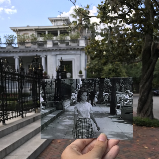 Using still images from classic movies filmed on location in Savannah, Cecilia Morris (@savannahfilmhistory) highlighted the city's history by juxtaposing (in person) those locations over the same contemporary scenes. This year's first-place photograph comes from an ongoing series of such images; and specifically features a still from the 1962 film Cape Fear, starring Gregory Peck and Robert Mitchum. The location in the photo is the front steps of the imposing and historic Armstrong Mansion on Bull Street, at the North end of Forsyth Park.