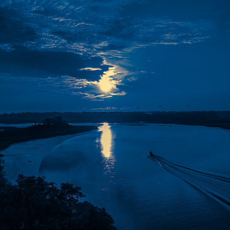 "From the beach to the marsh to the riverfront, waterways are essential to Savannah's charm. This aerial photo seeks to capture some of that magic in one frame as a boat cuts a course away from the docks,” Logue said. “A full moon over water is such a 'Savannah scene' that it was captured in Johnny Mercer's award-winning lyrics, which are both nostalgic for the past and a future longing for expanded horizons. I did not take this drone photo of the inlet named later for the song, but of the Wilmington River alongside Bonaventure Cemetery where the song-writer is buried."