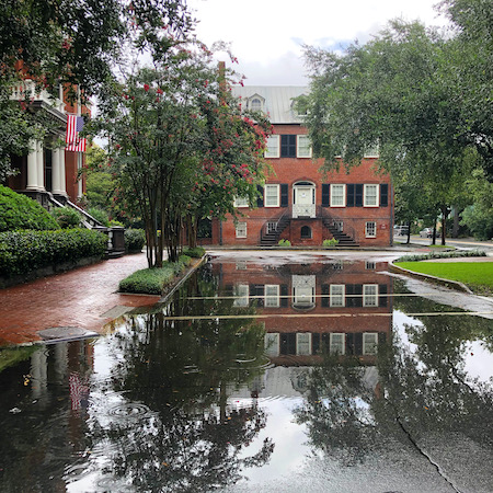 "Walking through Columbia Square on my way to meet a tour, I noticed this momentary view of the Davenport house,” Stalcup said. “The constant symmetry of its Federal façade was briefly doubled due to a summer morning downpour."