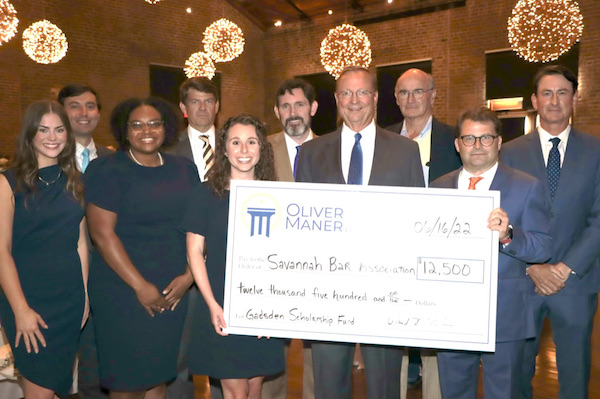 Oliver Maner, one of Savannah's oldest and most prominent law firms, presented $12,500 to the Savannah Bar Association to be allocated toward the Judge Eugene H. Gadsden Scholarship fund.
