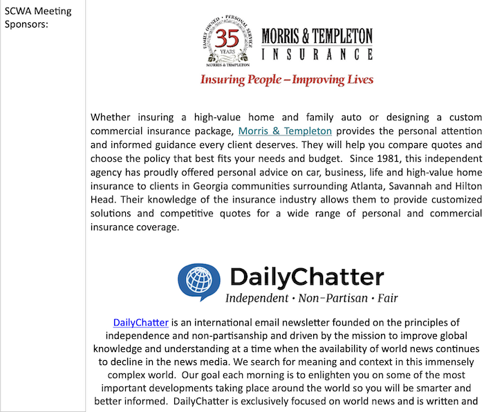 The Savannah CEO Briefing is a daily email newsletter that contains the day’s top business news headlines and a summary of each day’s feature. Subscribe Today.