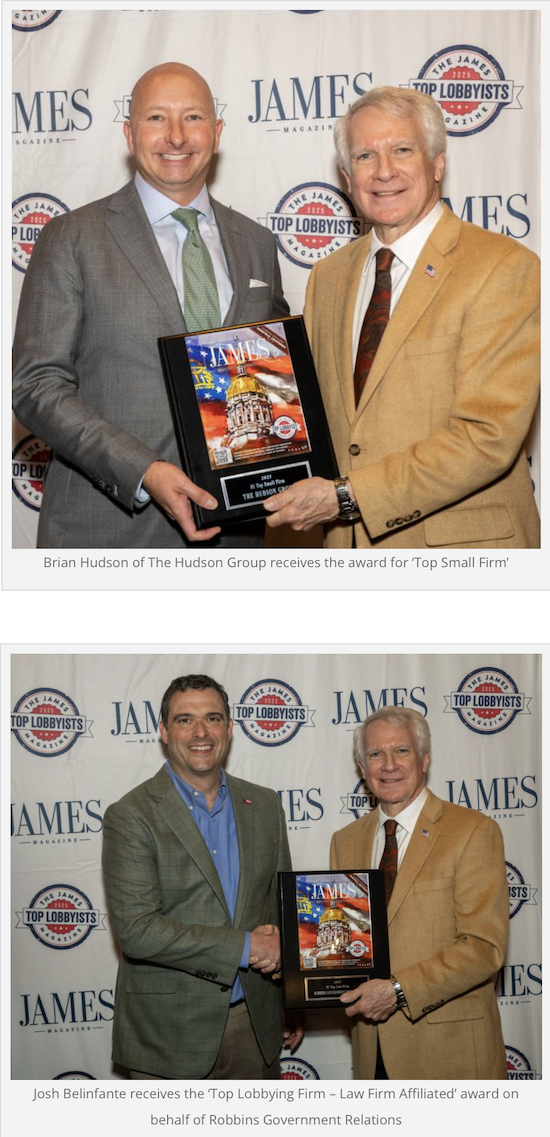We published our “2025 Top Lobbyists” rankings in our Sept.-Oct. 2025 magazine and, at a January 14th reception in Atlanta, JAMES CEO and Publisher Phil Kent presented awards to the deserving recipients.